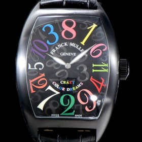 홍콩명품 [프랭크 뮬러] 남성용 크레이지 아워스 8880 CH NR COL DRM "리얼 점핑 아워-컬러드림" 유광 올블랙 PVD 코팅 고급스러운 물결무늬 크레이지 아워 다이얼 오토매틱 무브먼트 FRA0200