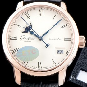 홍콩명품 [글라슈테 오리지날] 남성용 세나토 100-04-32-15-04 "엑설런스 파노라마 데이트&문페이즈" 고급스러운 18K 로즈골드 스틸 화이트 다이얼 오토매틱 무브먼트 GLA4215 > 글라슈테 오리지널 홍콩명품