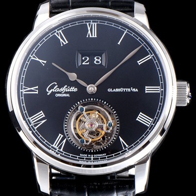 Glashutte Original Senator Date Tourbillon Black Dial Asian Tourbillon Hand-Winding Movement
