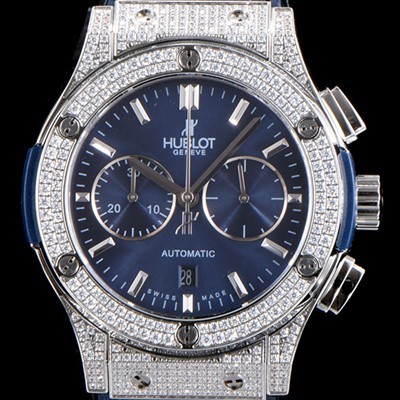 Hublot Classic Fusion Diamond Setting Men's Watch Chronograph Blue Dial Automatic Movement