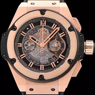 • 홍콩명품 [휴블렛]남성용 빅뱅 크로노그래프 44미리 18K로즈골드 다이아몬드우레탄 오토매틱 블랙다이얼 HUB10256