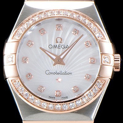 • 홍콩명품 [오메가] 여성 컬렉션 컨스틀레이션 123.25.27.60.55.002 오메가 코-액시얼 27MM 다이아몬드 세팅 베젤 화이트 자개 다이얼 18K 로즈골드 콤비 쿼츠 무브먼트 OMG0120
