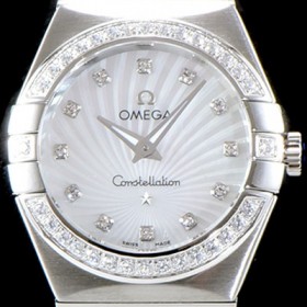 홍콩명품 [오메가] 여성 컬렉션 컨스틀레이션 123.15.27.20.55.001 오메가 코-액시얼 27MM 다이아몬드 세팅 베젤 화이트 자개 다이얼 쿼츠 무브먼트 OMG0120