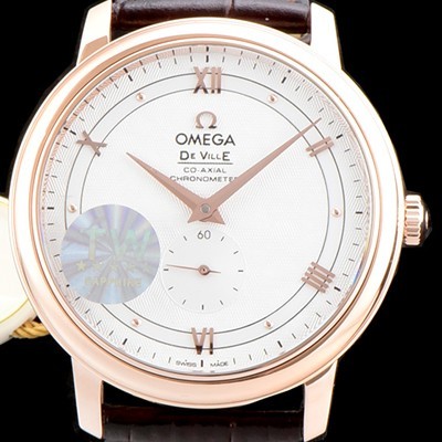 • 홍콩명품 [오메가] 남성용 드빌 프레스티지 424.13.39.20.02.001 "스몰 세컨즈 카보숑"코-액시얼 39.5MM 크로노미터 18K 로즈골드 화이트 다이얼 오토매틱 무브먼트 OMG05011