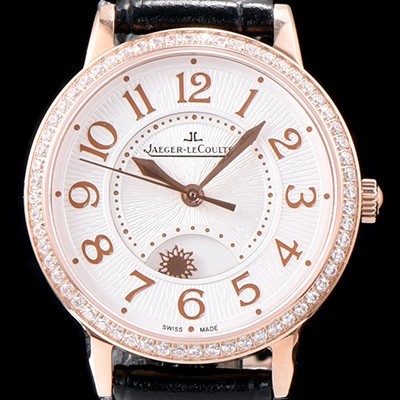 홍콩명품 [예거르꿀르뜨] 남성용 랑데부 나잇&데이 3442440 레이디 워치 18K 로즈골드 최상급 다이아몬드 세팅 베젤 문페이즈 화이트 텍스쳐드 다이얼 오토매틱 무브먼트 JAG0440 > 예거르꿀뜨르 홍콩명품