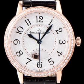 홍콩명품 [예거르꿀르뜨] 남성용 랑데부 나잇&데이 Q3442520 레이디 워치 18K 로즈골드 최상급 다이아몬드 세팅 베젤 문페이즈 화이트 텍스쳐드 다이얼 오토매틱 무브먼트 JAG0440