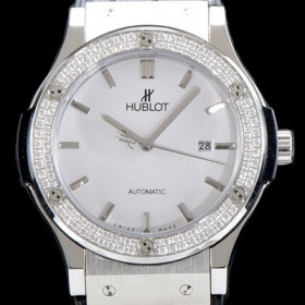 • 홍콩명품 [휴블렛] 남성용 클레식 퓨전 582.NX.2610.RX.1204 "실버-다이아몬드 베젤" 화이트 다이얼 오토매틱 무브먼트 HUB0100