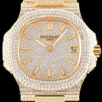 Patek Philippe TOP Grade Quality Nautilus Jumbo 18k Yellow Gold Full Diamond Set Case Bracelet Automatic Movement