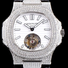 홍콩명품 [파텍필립] 남성용 노틸러스 뚜르비옹 최상급쥬얼 다이아몬드 풀 세팅 케이스 화이트 텍스쳐 다이얼 아시안 투어빌론 탑재 PAT0104 > 파텍필립 홍콩명품