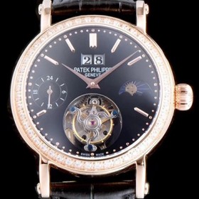 • 홍콩명품 [파텍필립] 남성용 그렌드 컴플리케이션 투어빌론 무브먼트 문페이즈 다이아 베젤 블랙 다이얼 PAT0104
