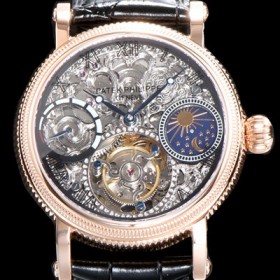 홍콩명품 [파텍필립] 남성용 그렌드 컴플리케이션 18k 로즈골드 문페이즈 세귤 리얼 투어빌론 최상급 쥬얼 다이아몬드 베젤 스켈레톤 다이얼 PAT0401 > 파텍필립 홍콩명품