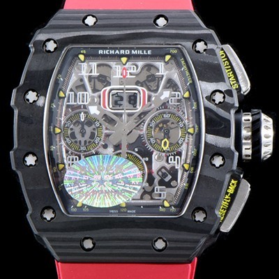 • 홍콩명품 [리차드밀레] 남성용 오토매틱 플라이백 RM11-03 오버사이즈 데이트 크로노그래프레드 포지드 카본 케이스 스켈레톤 다이얼 오토매틱 무브먼트 ric0278