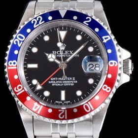 제품특징 GMT-마스터II GMT-MasterII는 12시간을 기준으로 하는 일반적인 시,분,초 외에도 24시간용 시침 및 24시간이 음각으로 표시된 양방향 회전 베젤을 장착하고 있습니다.눈에 띄는 컬러로 표시된 24시간용 시침이 가리키는 베젤의 눈금을 통해 제 1시간대의"본국 시각"을 확인할 수 있습니다.여행지 현지 시각은 와인딩 크라운의 독창적인 메커니즘을 통해 매우 간편하게 조정됩니다.시침은 분침과 초침에 영향을 주지 않고 독립적으로 움직이기 때문에 정밀한 타임키핑에 영향을 미치지 않고 새로운 시간대를 적용할 수 있습니다.