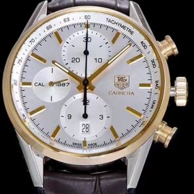 홍콩명품 [태그호이어] 남성용 까레라 칼리버 1887 크로노그래프 화이트 다이얼 오토매틱 무브먼트 TAG0201