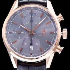 • 홍콩명품 [태그호이어] 남성용 까레라 칼리버 1887 크로노그래프 로즈골드 그레이 다이얼 오토매틱 무브먼트 TAG0230