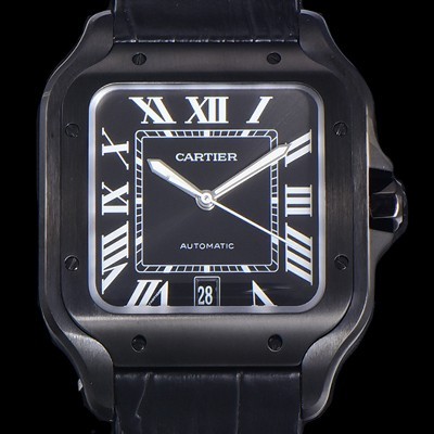 Cartier Santos Automatic Black Dial Black Rubber Men's 39mm Large