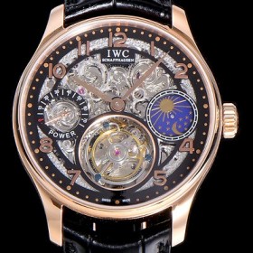 IWC Portugieser 42mm Mens hand-Widing Tourbillon Movement Skeleton Black Dial