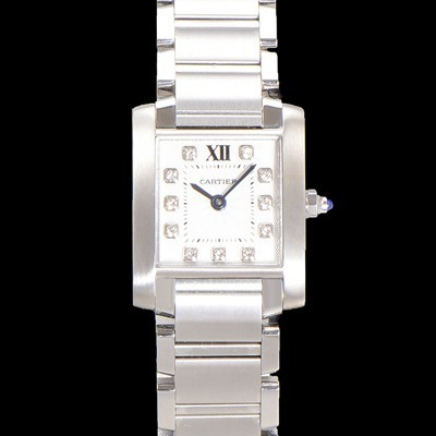 Cartier Women's Tank "Française Watch!!" Diamond S Model Steel Silver Plenque Dial Swiss Quartz Movement