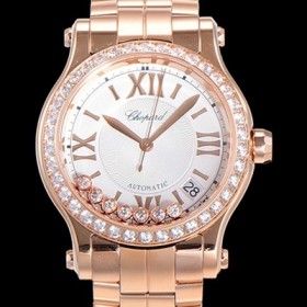 Chopard Happy Sport Automatic ETA2892-2 36mm Ladies 18K Rose Gold Watch Diamond White Dial