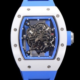 • 홍콩명품 [리차드밀레] 남성용 RM055 세라믹 제질 수동형 무브먼트 50미리 러버밴드 스켈레톤 다이얼 RIC73939