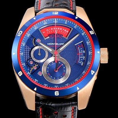 • 홍콩명품 [몽블랑] 남성용 타임워커 쿼츠 VK타입 46.4미리 금장 로즈골드 가죽줄 래더스트랩 블루다이얼 MON71165