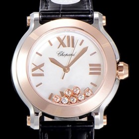 홍콩명품 [쇼파드]해피스포츠 라운드 쿼츠 로즈골드 투톤-콤비 ETA-955.112 레이디 36미리 가죽줄 화이트다이얼 CHO73679 > 쇼파드 홍콩명품