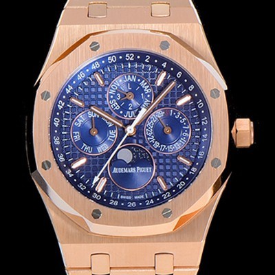 홍콩명품 [오데마피게] 남성용 로얄오크 페퍼츄얼 41미리 로즈골드 금장시계 오토매틱 5134타입 금장 오열 브레이슬릿 문페이즈 블루다이얼 AUD74443 요약정보 및 구매