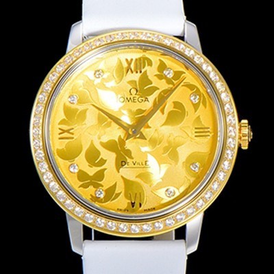 홍콩명품 [오메가] 여성용 드빌 프레스티지 32.7미리 쿼츠 금장 보석/큐빅 셋팅 4061타입 레이디 소가죽줄 골드다이얼 OMG79437 > 오메가 홍콩명품