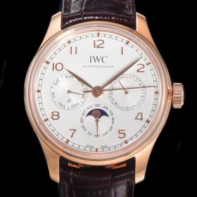• 홍콩명품 [아이더블유씨] 남성용 포르투기즈 IW344202 퍼페추얼 캘린더 문페이즈 오토매틱 42mm Cal.82650 타입 18K 로즈골드 가죽줄 화이트다이얼 iwc25810