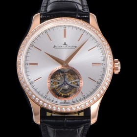 홍콩명품 [예거르꿀트르] 남성용 마스터 그랜드 트레디션 1662451 오토매틱 투어빌론 798타입 42mm 18K 로즈골드 보석다이아‘™드베젤 가죽시계 실버다이얼 jag03476