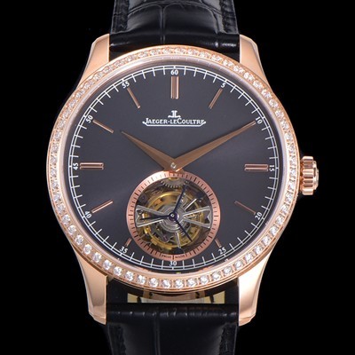 • 홍콩명품 [예거르꿀트르] 남성용 마스터 그랜드 트레디션 1662451 오토매틱 투어빌론 798타입  42mm 18K 로즈골드 보석다이아‘™드베젤 가죽시계 블랙다이얼   jag26803