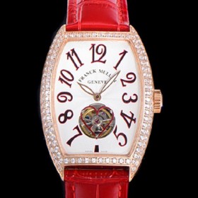 홍콩명품 [프랭크뮬러] 여성용 상트레 커백스 오토매틱 보석/다이아 케이스 여성용시계 18K 로즈골드 가죽줄 화이트다이얼 fra69430 > 프랭크뮬러 홍콩명품