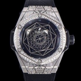 Hublot Mens Big Bang Sang Bleu Titanium Black 45mm Diamond Case Automatic HUB1213 TYPE Balck Dial