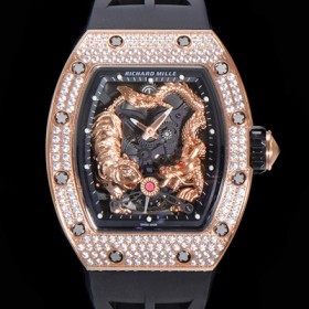 홍콩명품 [리차드밀레] 남성용 리차드밀 RM035 타이거&드래곤 미쉘 요 워치!! 수공 맞물림 형식의 쥬얼세팅 고급스러운 18K 로즈골드 스켈레톤 다이얼 오토매틱 무브먼트 RIC0451