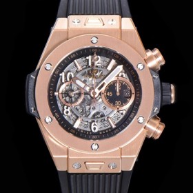 • 홍콩명품 [휴블렛] 남성용 빅뱅 유니코 킹골드 크로노그래프 421.OX.5180.RX 로즈골드 HUB1280 오토매틱 므브먼트 44mm 러버밴드 스켈레톤 다이얼 hub38959