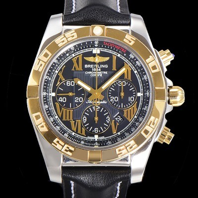 홍콩명품 [브라이틀링] 남성용 원드라이더 크로노맷 오토매틱 ETA-7750 기계식 44mm 18K 옐루골드 가죽줄 블랙다이얼 bre1951 > 브라이틀링 홍콩명품