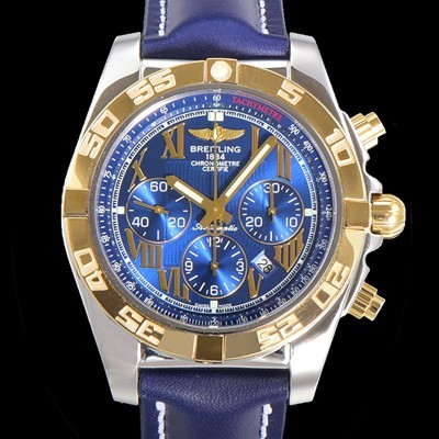 홍콩명품 [브라이틀링] 남성용 원드라이더 크로노맷 오토매틱 ETA-7750 기계식 44mm 18K 옐루골드 가죽줄 블루다이얼 bre2531 > 브라이틀링 홍콩명품