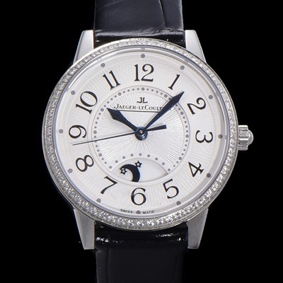 홍콩명품 [예거 르꿀르뜨] 여성용 랑데뷰 나잇&데이 문페이즈 오토매틱 898A 타입 무브 34mm 보석 배젤 가죽줄 화이트다이얼 jag9915 > 예거르꿀뜨르 홍콩명품