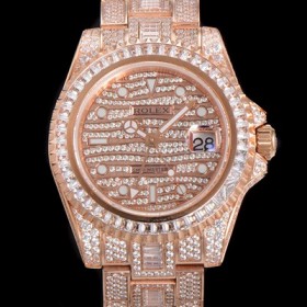 홍콩명품 [로렉스] 남성용 지엠티-마스터 오토매틱 E2836-2 타입 18K 로즈골드/풀다이아몬드 셋팅 41mm 메탈줄 골드/다이아몬드 다이얼 rol1299 > 로렉스 홍콩명품