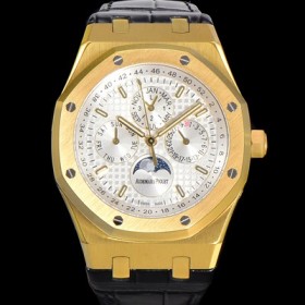 홍콩명품 [오데마피게] 남성용 로얄오크 퍼펙츄얼 캘린더 41mm 오토매틱 T5134 타입 18K옐루골드 가죽줄 화이트다이얼 aud3191 > 오데마피게 홍콩명품