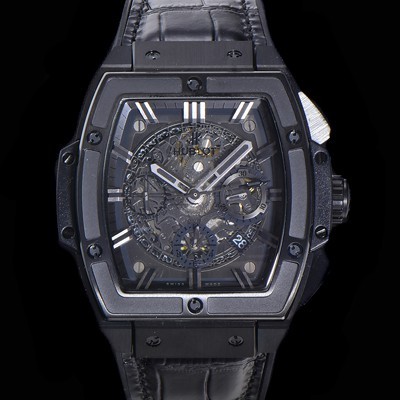 • 홍콩명품 [휴블렛] 남성용 스피릿 빅뱅 마스터피스 크로노그래프 Hub4700타입 45mm PVD코팅 가죽줄 스켈래톤다이얼 hub1512