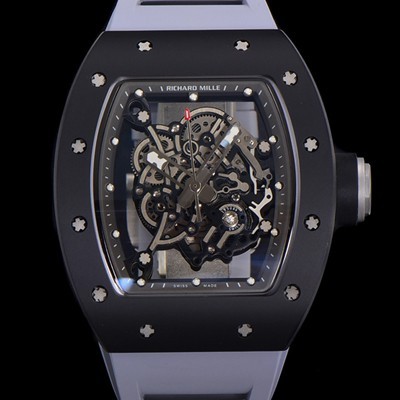 • 홍콩명품 [리차드밀레] 남성용 RM055 블랙 PVD코딩 스켈레톤 다이얼 러버 스트랩 기계식 수동형 무브먼트 RIC07176