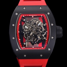 • 홍콩명품 [리차드밀레] 남성용 RM055 블랙 PVD코딩 스켈레톤 다이얼 러버 스트랩 기계식 수동형 무브먼트 RIC07178