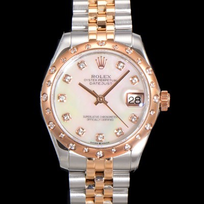 Rolex Date-Just Oyster Perpetual 31mm Ladies Automatic 18K Rose Gold TWO-TONE Combi White Dial