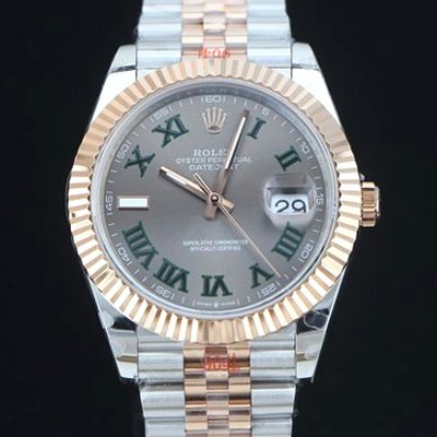Rolex Men's 904L Steel!! 2022 New Datejust 41mm Gray Dial Roman Index 18K Rose Gold New Cal.3235 Automatic Movement
