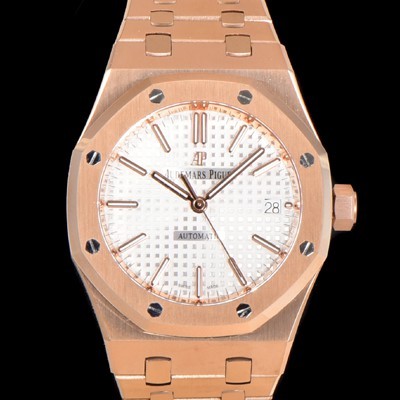 Audemars Piguet Men's High-End 37mm Royal Oak white Waffle dial 18K rose gold Cal.3120 Automatic Movement