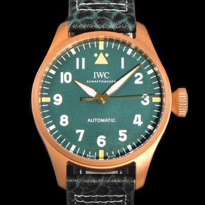 IWC Men's Big Pilot's Watch Bronze Spitfire 43mm Case Automatic 9015 Type Leather Strap Green Dial
