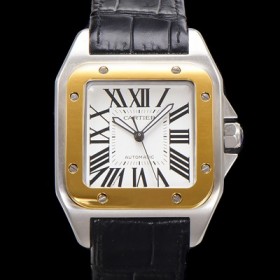 홍콩명품 [까르띠에] 산토스 100 W20072X7 오토매틱 ETA2824-2 타입 18k 옐루골드 베젤 남성용 51mm 가죽줄 화이트 다이얼 car69318