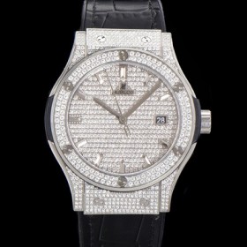 Hublet Men's Classic Fusion Diamond Setting Cubic/Gem Dial 42mm Automatic 2892 Type Leather/Urethane Mix Band