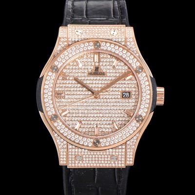 Hublet Men's Classic Fusion Diamond Setting Cubic/Gem Dial 18K Rose Gold 42mm Automatic 2892 Type Leather/Urethane Mix Band